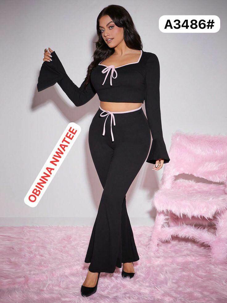 Découvrez cet ensemble noir élégant, parfait pour toutes les occasions. Composé d'un haut court à manches évasées et d'un pantalon à taille haute, ce vêtement vous offre une allure moderne et sophistiquée. Idéal pour les sorties de soirée ou un look décontracté et tendance.