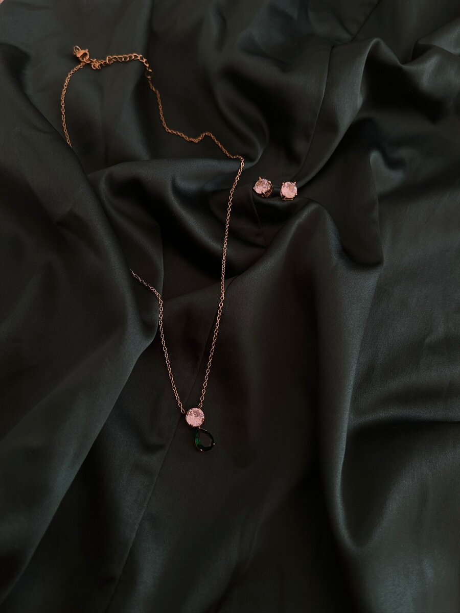 Ensemble élégant de collier et boucles de la collection Ounia couleur Émeraude