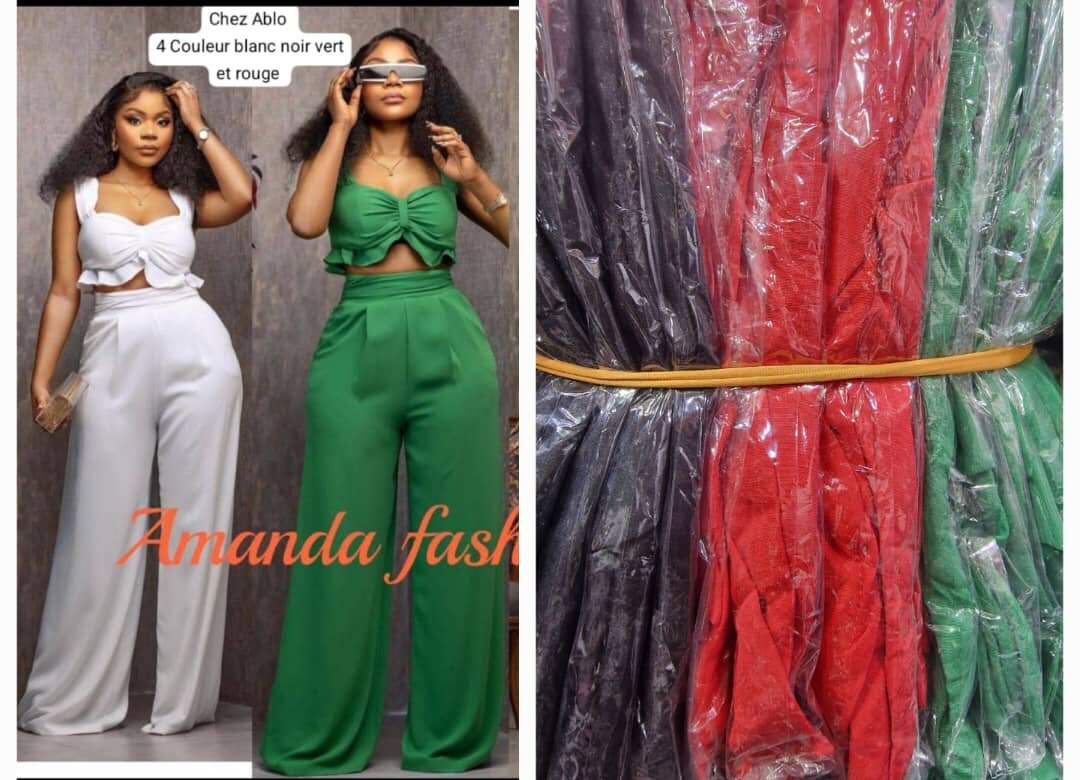 Ensemble élégant avec haut noué et pantalon large, idéal pour une allure chic quotidienne. Disponible en plusieurs couleurs, parfait pour soirées ou sorties décontractées.
