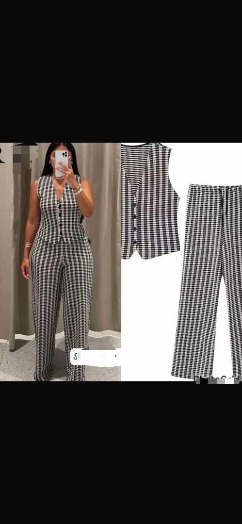 Découvrez cet élégant ensemble pantalon et gilet à motifs pour femme. Parfait pour une allure chic et professionnelle au bureau ou lors d'une soirée. Fabriqué avec des matériaux de qualité pour un confort optimal. Ajoutez une touche sophistiquée à votre garde-robe avec ce set incontournable.