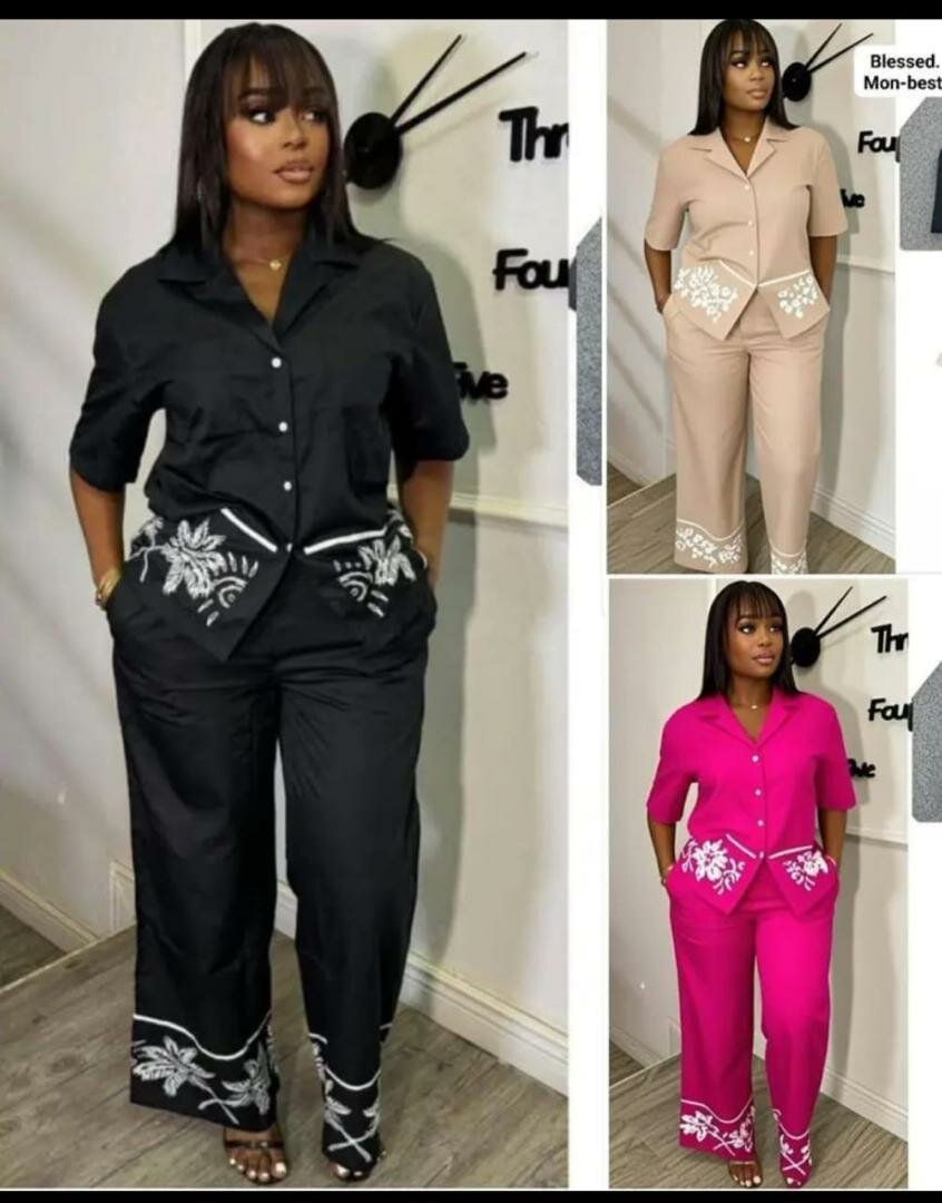 Cet ensemble élégant se compose d'une chemise et d'un pantalon ornés de motifs floraux, parfait pour un look chic et sophistiqué. Disponible en plusieurs couleurs vibrantes, il est idéal pour les sorties décontractées ou les événements spéciaux. Son design confortable avec des poches le rend pratique tout en restant stylé.