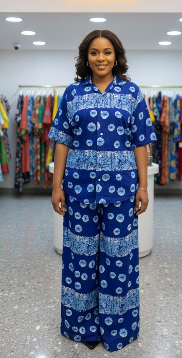 Découvrez notre ensemble pantalon à motif unique en bleu vibrant. Conçu pour le confort et le style, il est parfait pour les sorties décontractées ou les occasions spéciales. La coupe fluide offre une grande liberté de mouvement tout en ajoutant une touche élégante à votre tenue. Idéal pour toutes les saisons, il est un incontournable de votre garde-robe tendance.