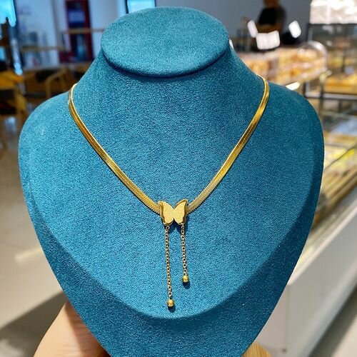 Cet ensemble papillon 3 en 1 , est fait en or plaqué , composé de chaîne , boucles doreilles et de bracelets. Cet ensemble a une touche raffinée et la chaîne est un ras de cou discret . Vous allez adorer mes dames