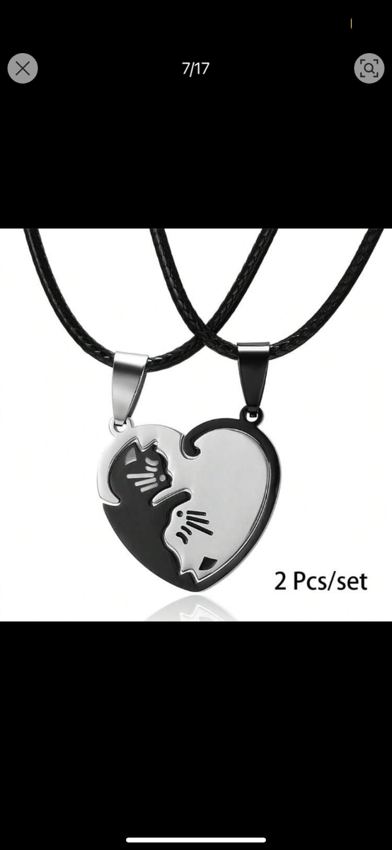Ensemble pendentif couple / amitié chat noir