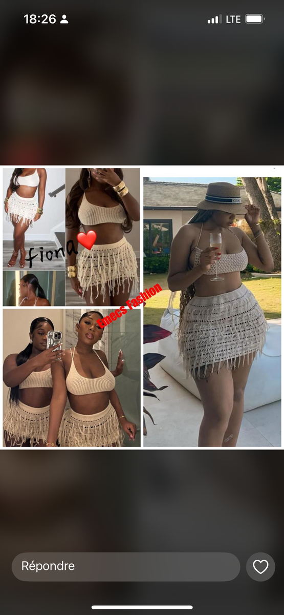 Craquez pour cet ensemble plage bohème, composé d'un haut bandeau et d'une jupe à franges. Idéal pour un look estival chic et décontracté. La coupe flatteuse et les matériaux légers garantissent confort et style lors de vos escapades au bord de l'eau. Parfait pour se détendre au soleil ou pour une soirée cocktail en vacances.