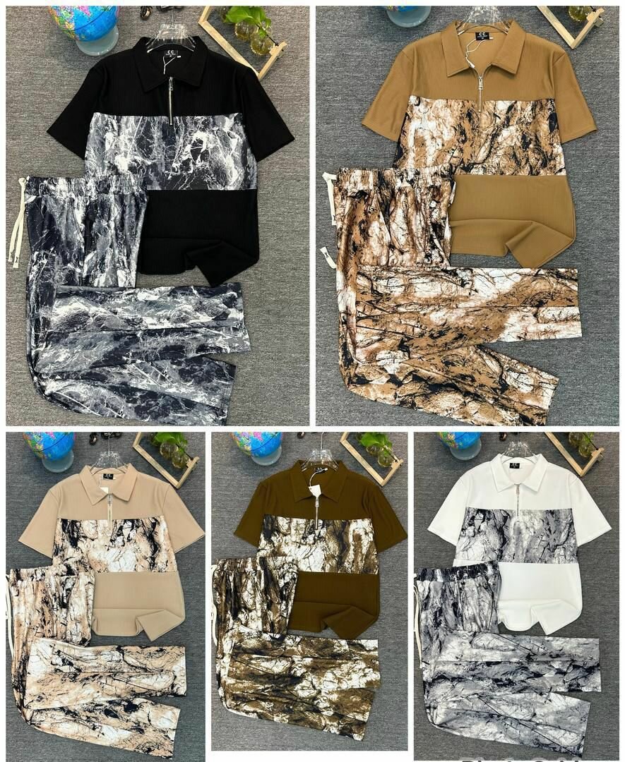 Soyez élégant avec cet ensemble polo et pantalon imprimé à motifs naturels. Confortable et tendance, idéal pour les sorties décontractées ou les moments de détente. Disponible en plusieurs couleurs.