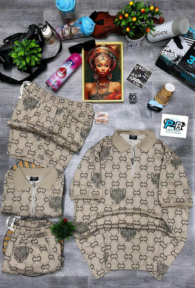 Découvrez cet ensemble élégant composé d'un polo et de shorts assortis avec un motif distinctif. Confortable et parfait pour un look tendance, il s'adapte aussi bien à un usage quotidien qu'à des occasions spéciales. Idéal pour ceux qui recherchent style et originalité.