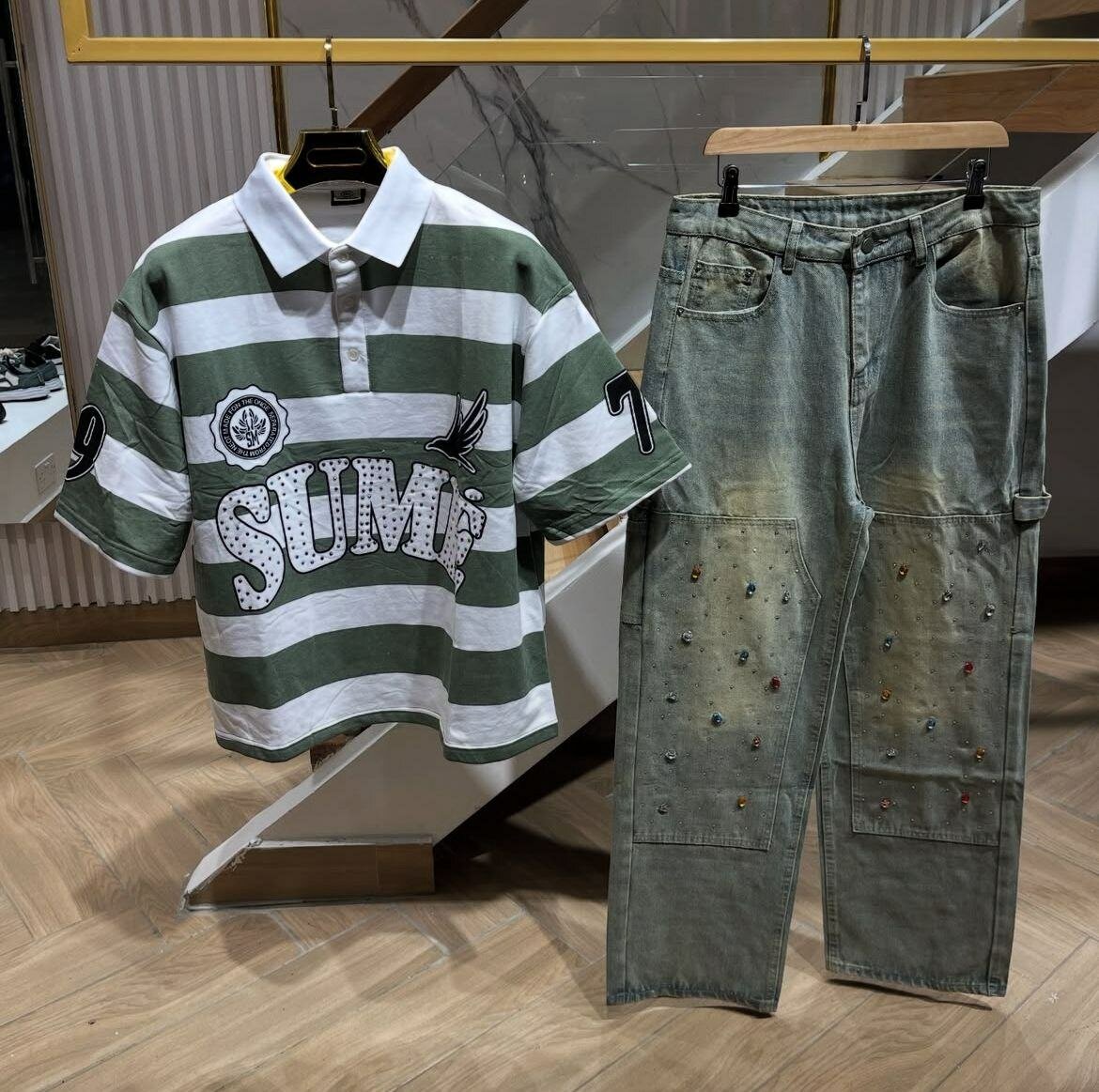Polo rayé unisexe en coton, parfait pour un look streetwear. Design audacieux avec détails graphiques. Idéal pour les sorties décontractées ou les événements urbains. Associez-le à un jean pour un style moderne.