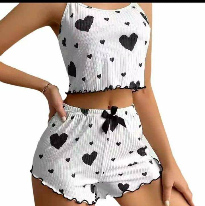 Adoptez un style confortable et charmant avec cet ensemble pyjama pour femme orné de motifs en forme de cœur( blanc-noir et rose-noir)., il offre un confort optimal tout en restant élégant pour vos nuits de détente. Parfait pour les soirées cocooning ou un cadeau attentionné.