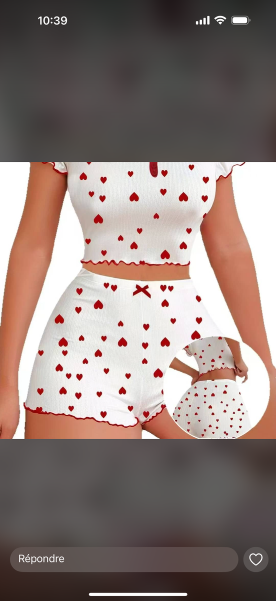 Réveillez vos nuits avec cet adorable ensemble pyjama orné de motifs cœurs rouges. Confort ultime et style romantique, idéal pour un sommeil paisible ou une journée de détente à la maison. Tissu doux et élastique pour un ajustement parfait. Faites de vos moments de repos une expérience élégante et confortable.