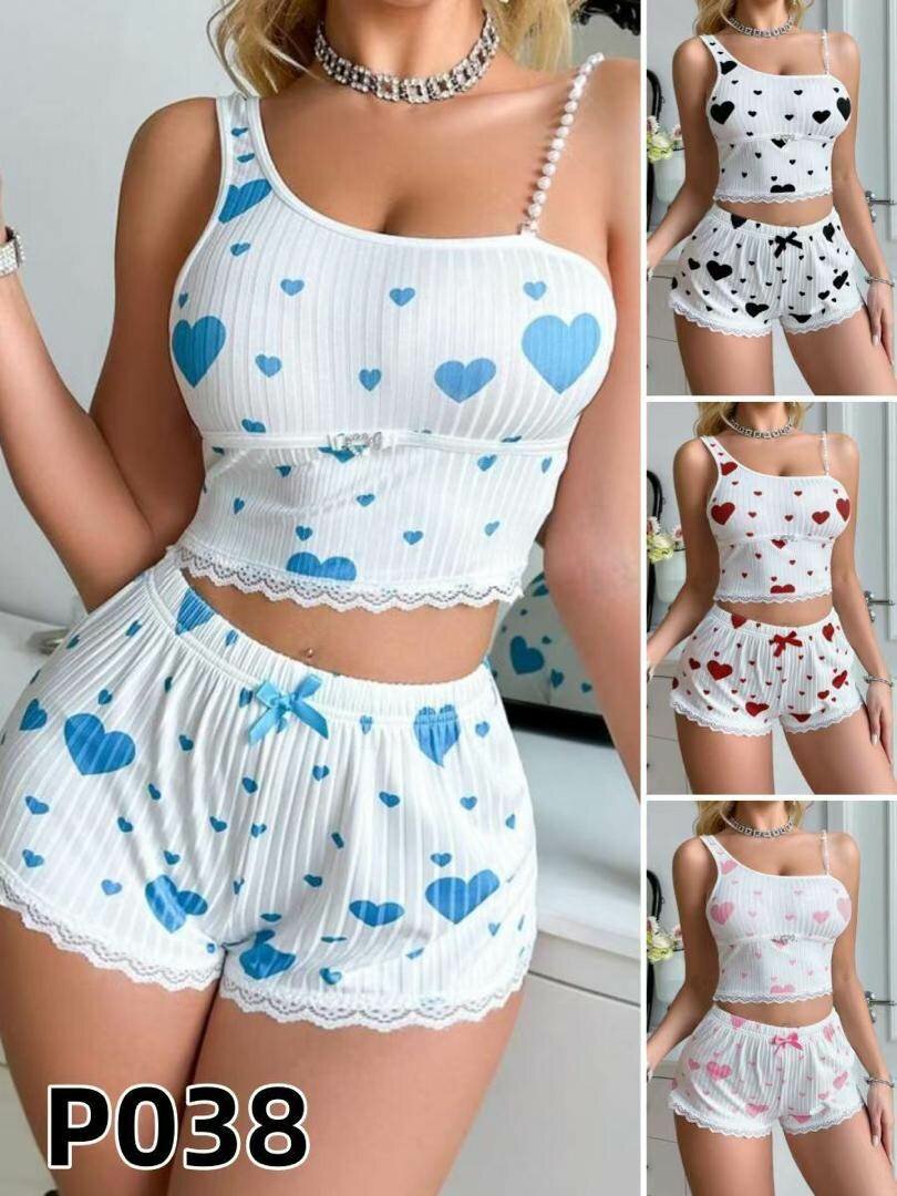 Ce ravissant ensemble de pyjama, orné de motifs cœurs, est parfait pour un confort chic à la maison. Fabriqué en tissu doux et respirant, il assure une nuit paisible. Idéal pour se détendre ou offrir en cadeau, c'est le choix parfait pour toutes les saisons.