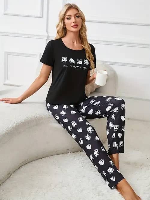 Pyjama confortable pour femme avec motif chat. Idéal pour des nuits confortables.