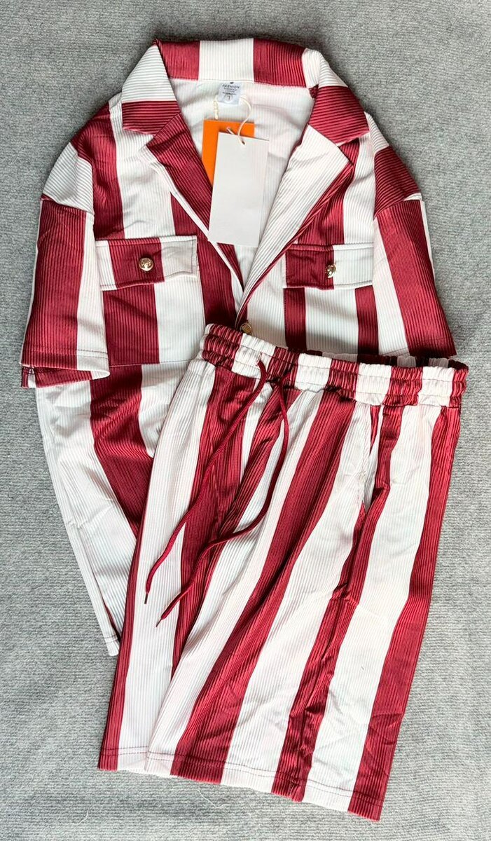 Découvrez cet ensemble pyjama rayé rouge et blanc, idéal pour des nuits confortables et stylées. Conçu en tissu léger, avec une chemise à manches courtes et un short à taille élastique. Parfait pour se détendre à la maison ou offrir en cadeau.