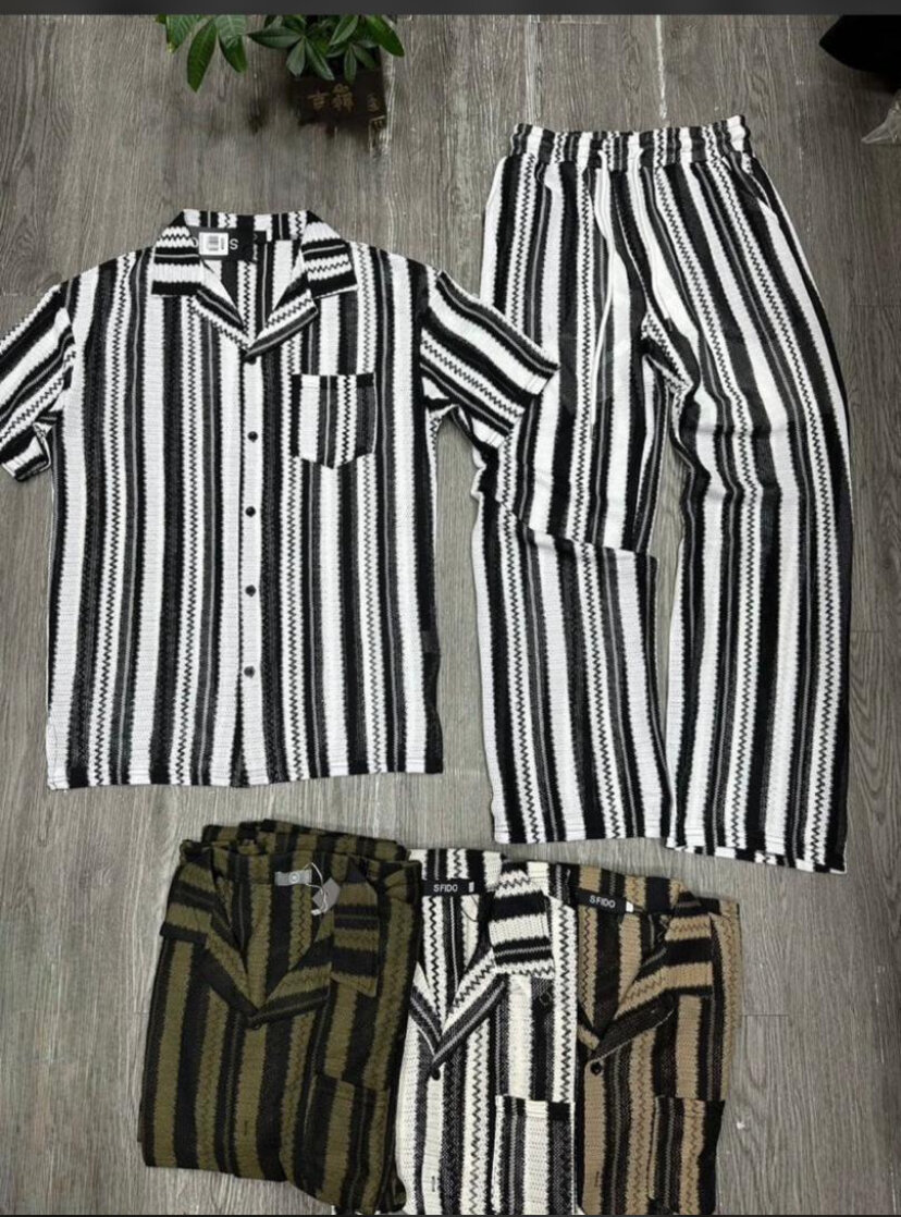 Optez pour l'élégance avec cet ensemble chemise et pantalon à rayures. Confortable et stylé, idéal pour une tenue décontractée ou formelle. Disponible en plusieurs coloris, il s'adapte à toutes vos occasions estivales.