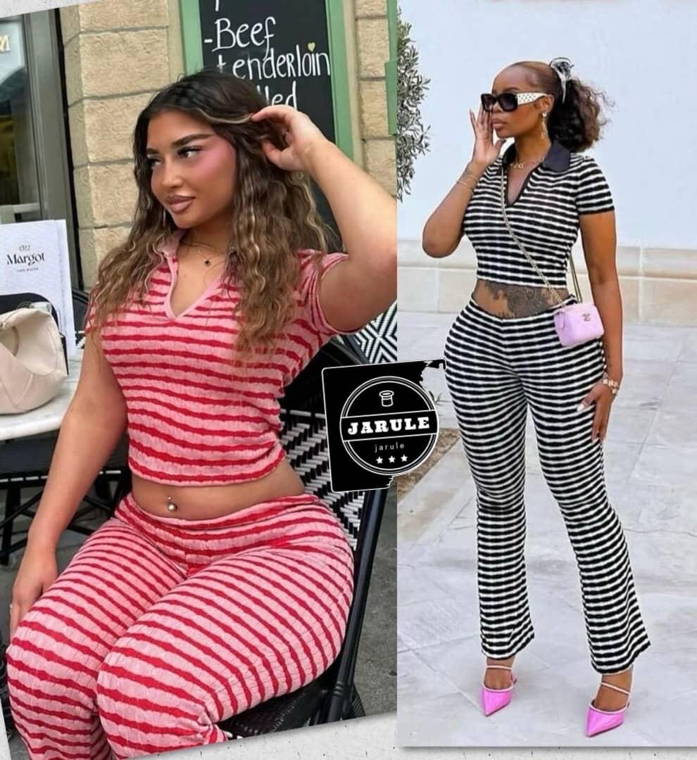 Optez pour cet ensemble rayé moderne et confortable. Idéal pour un look décontracté tout en restant élégant. Le tissu doux et extensible assure un grand confort, parfait pour vos sorties ou détentes à la maison. Disponible en plusieurs coloris, ce set est un indispensable de votre garde-robe pour toutes les saisons.