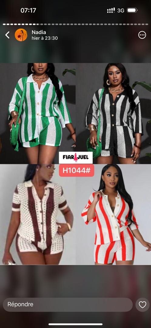 Optez pour cet ensemble rayé tendance, parfait pour les sorties estivales ou les moments de détente à la maison. Doté de couleurs vibrantes et d'une coupe confortable, il est idéal pour les femmes recherchant style et aisance. Associez-le avec des accessoires pour une allure chic et décontractée.
