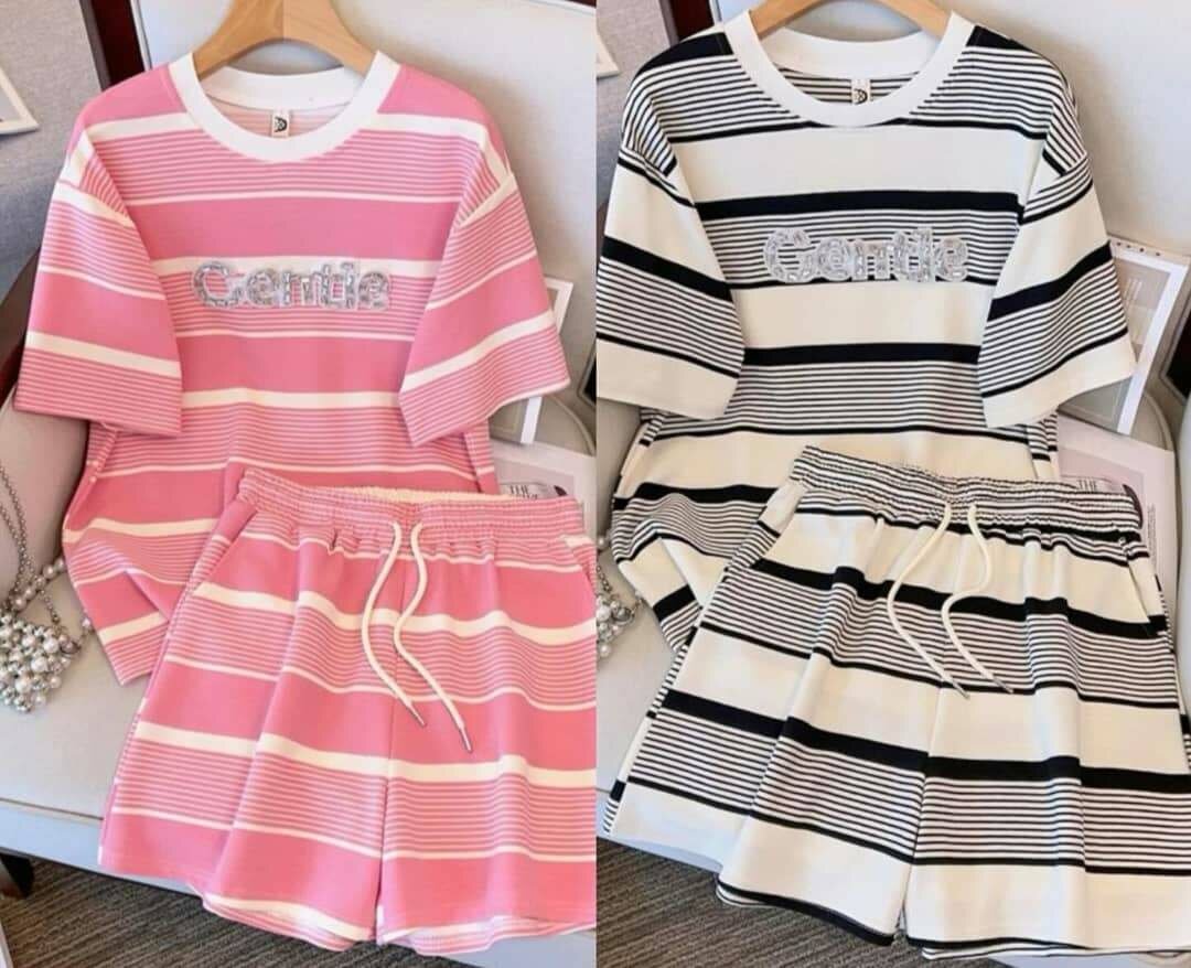 Adoptez le confort avec cet ensemble rayé décontracté pour un look tendance et relax. Parfait pour la maison ou une sortie décontractée. Disponible en rose vif et en noir classique. Tissu doux pour un confort maximal. Idéal pour les journées d'été ou les sessions de détente.