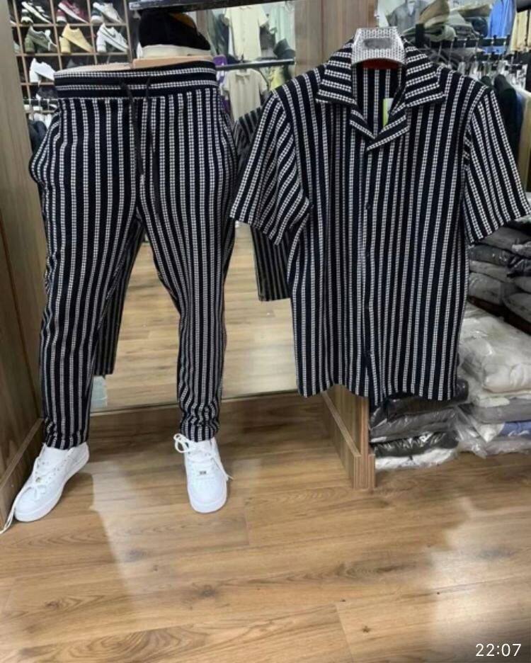 Découvrez cet ensemble rayé chic pour homme, parfait pour une tenue décontractée ou sophistiquée. Fabriqué avec des matériaux de haute qualité, cet ensemble offre un confort optimal tout en restant à la mode. Idéal pour les sorties en soirée ou les occasions spéciales.