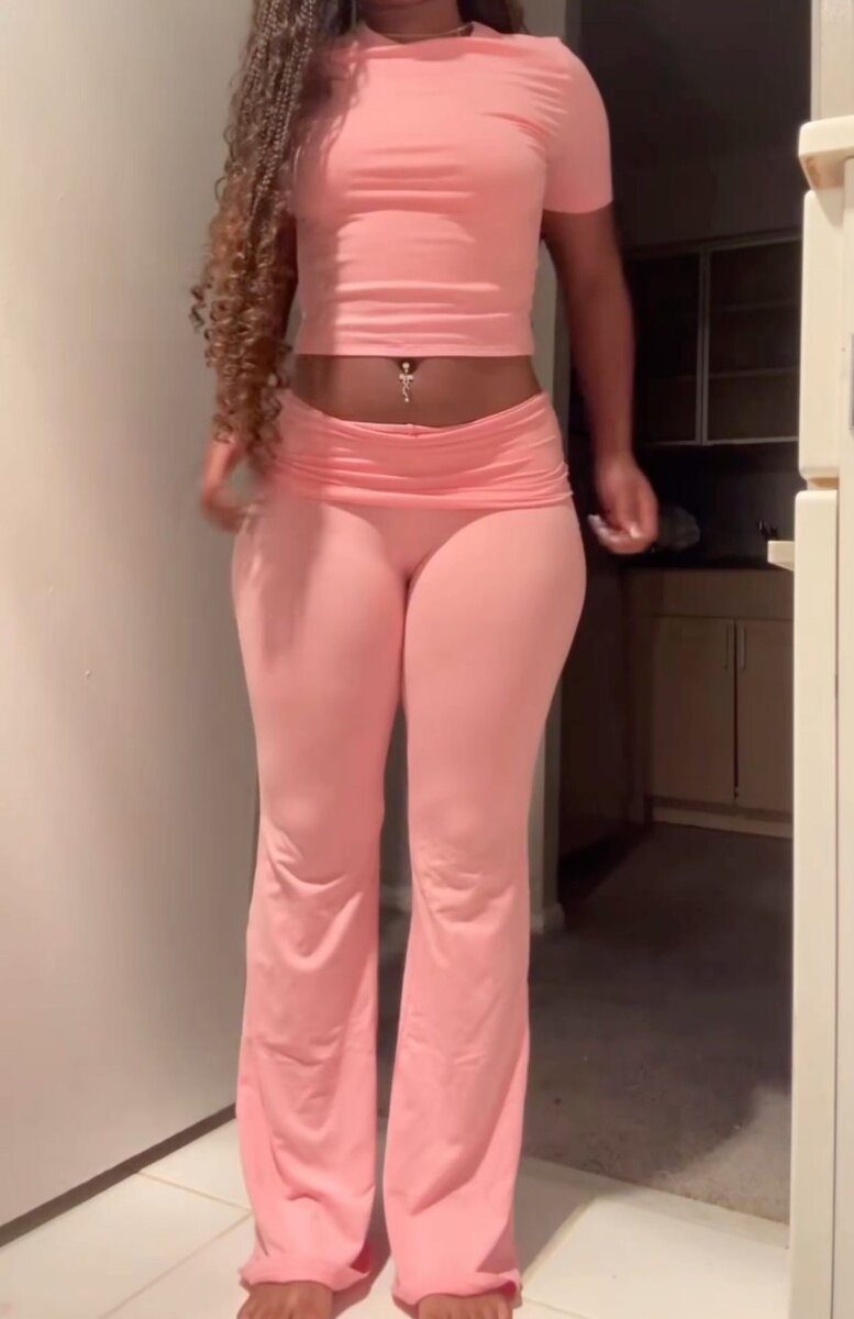 Optez pour un style confortable et tendance avec cet ensemble deux pièces rose. Parfait pour une tenue casual ou pour une séance de yoga, il allie style et confort.