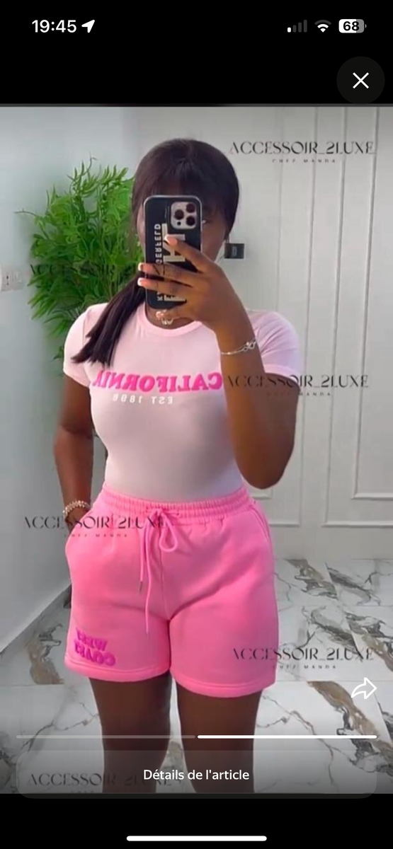 Profitez du confort ultime avec cet ensemble rose, idéal pour vos journées décontractées. T-shirt aux motifs tendance et short confortable, parfait pour un look estival et convivial.