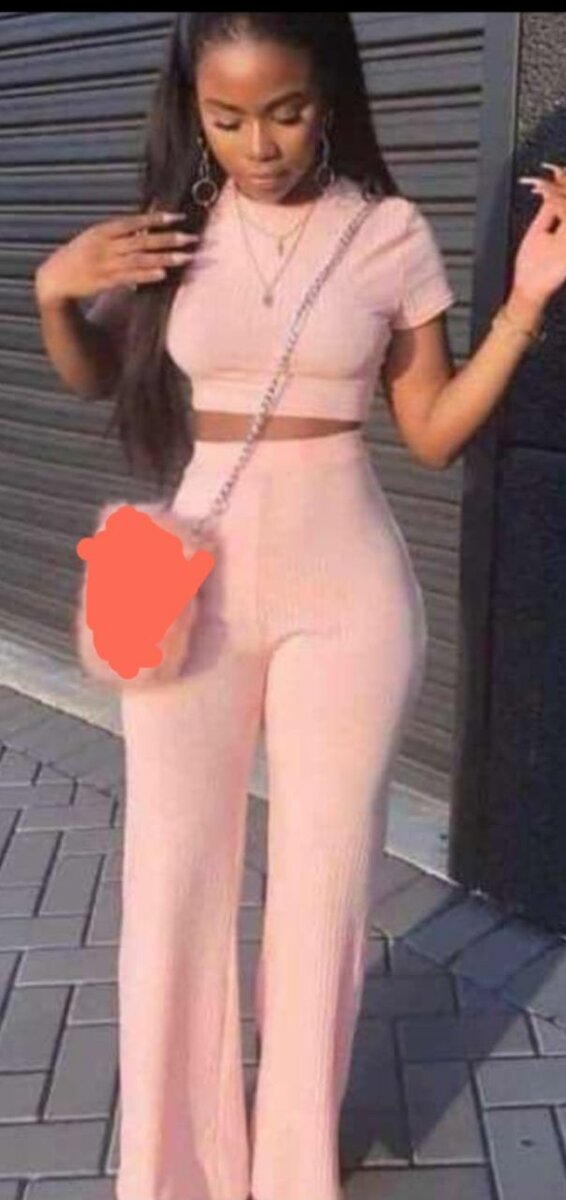 Ensemble féminin tendance deux pièces en rose pâle. Comprend un haut court à manches courtes et un pantalon taille haute évasé pour un style chic et confortable. Idéal pour des sorties décontractées ou des occasions spéciales. Fabrication de haute qualité pour un port tout au long de la journée. Complétez votre look avec des accessoires assortis.