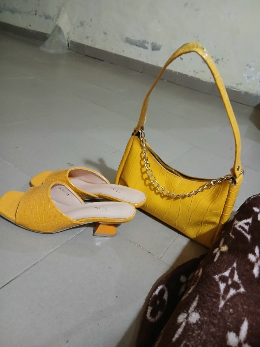 Découvrez cet ensemble chic avec un sac à main élégant et des sandales assorties en jaune vibrant. Idéal pour ajouter une touche de couleur à vos tenues estivales, cet ensemble allie confort et style, parfait pour les sorties en ville ou les occasions spéciales.