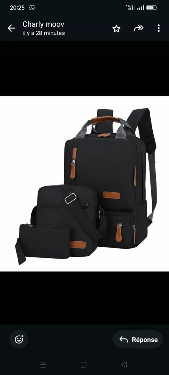 Un ensemble pratique de sacs à dos pour toutes vos aventures. Comprend un grand sac à dos, une besace, et une pochette. Idéal pour les voyages, l'école et le bureau avec compartiments organisés.