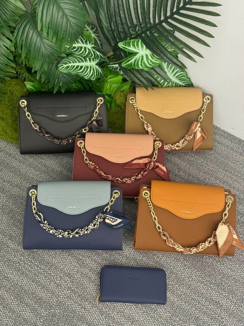 Découvrez cet ensemble de sacs à main élégants avec chaînes et foulards décoratifs.