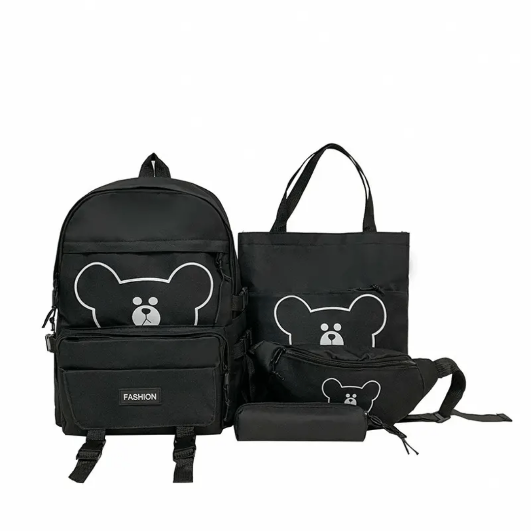 Découvrez l'ensemble de sacs mignons, parfait pour l'école et les sorties. Comprend un sac à dos spacieux, une sacoche polyvalente, et un petit sac à bandoulière. Design adorable avec motif ours, disponible en plusieurs couleurs. Idéal pour les enfants et les adolescents.