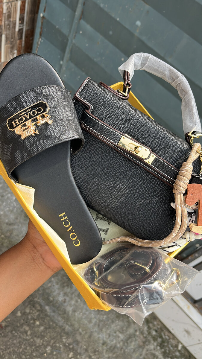 Découvrez cet ensemble élégant comprenant une sandale coach en coffret et un sac à main Hermès en coffret Parfait pour les femmes qui apprécient la mode et le style.