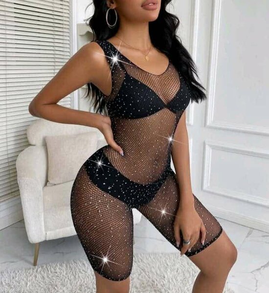 Transformez votre garde-robe avec cet ensemble noir audacieux et scintillant. Conçu en dentelle élégante avec des détails en maille révélateurs, il est idéal pour des soirées spéciales. La coupe ajustée et les manches 3/4 ajoutent une touche de sophistication. Parfait pour se démarquer lors de fêtes ou événements glamour.
