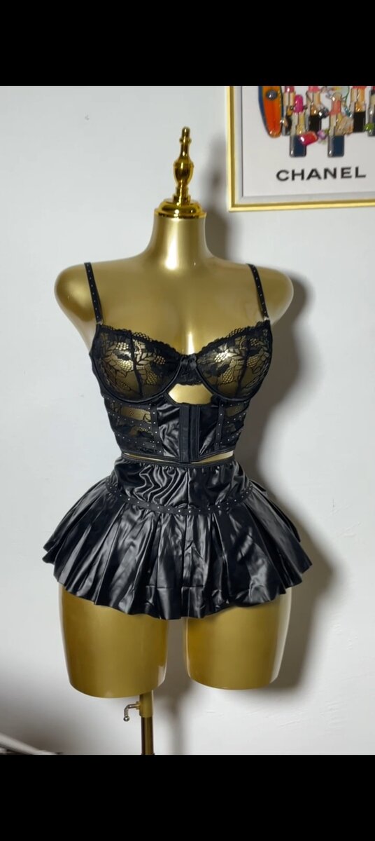 Cet ensemble séduisant allie dentelle délicate et détails en similicuir pour une allure audacieuse. Idéal pour des occasions spéciales, il offre un confort tout en étant sexy. L'effet corset accentue la silhouette pour une touche glamour. Un choix parfait pour une soirée romantique ou une surprise pour votre partenaire.