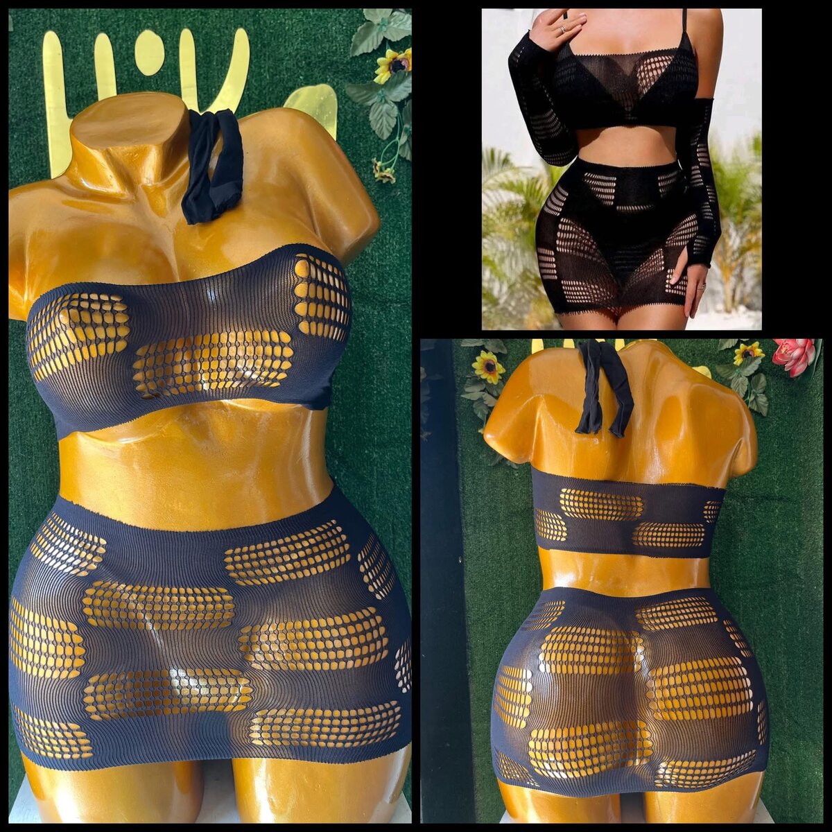 Sublimez votre silhouette avec cet ensemble en maille noire, idéal pour une soirée spéciale. Léger et extensible, il épouse parfaitement vos courbes tout en ajoutant une touche audacieuse à votre style. Parfait pour des moments intimes ou une sortie en boîte de nuit. Fabriqué pour offrir confort et allure.