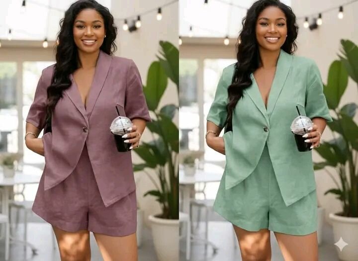 Parfait pour l'été, cet ensemble élégant de short et blazer pour femme est confortable et stylé. Disponible en plusieurs couleurs pour exprimer votre unicité. Idéal pour des occasions décontractées ou des sorties en ville.