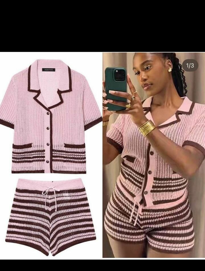 Ensemble short femme été en tricot. Confortable et élégant, idéal pour les journées décontractées. Matière douce et respirante, parfait pour l'été.