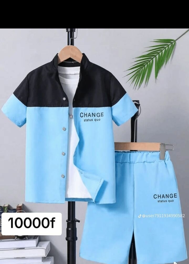 Ensemble short homme bleu composé d'une chemise et d'un short en tissu léger. Idéal pour les journées ensoleillées.