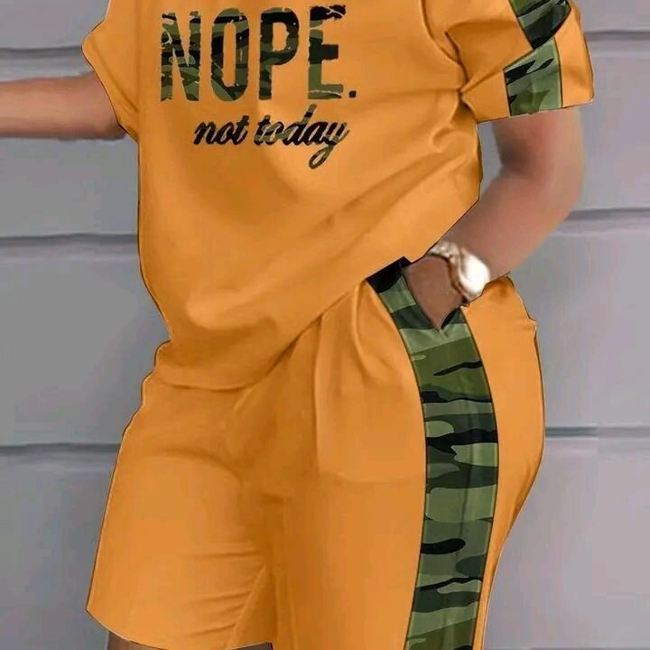 Ensemble short homme orange avec motif camouflage sur les côtés. Confortable et décontracté, idéal pour les sorties décontractées ou les activités sportives.