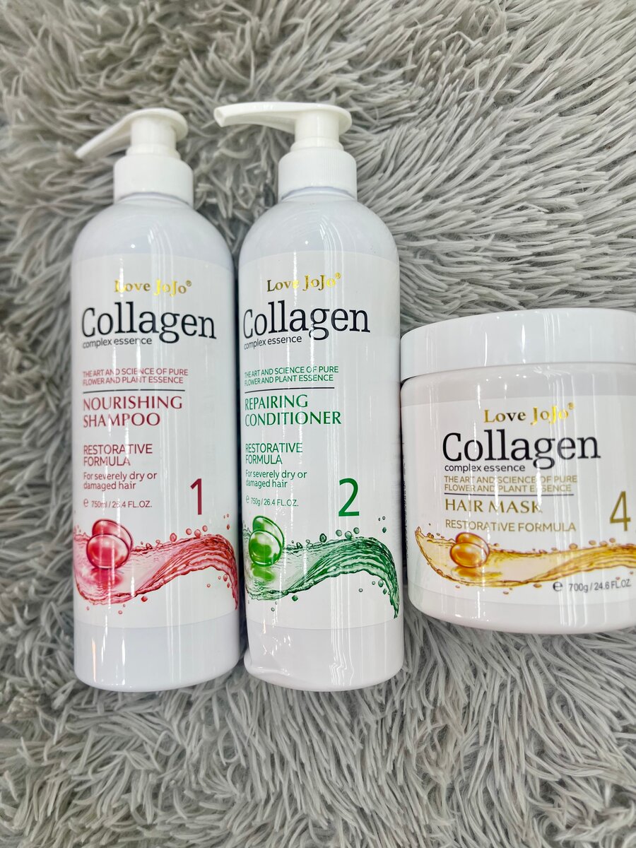 Transformez vos cheveux avec cet ensemble complet de soin capillaire au collagène. Comprend un shampooing nourrissant, un après-shampooing réparateur et un masque pour une restauration intense. Idéal pour des cheveux sains, forts et brillants. Convient à tous les types de cheveux.
