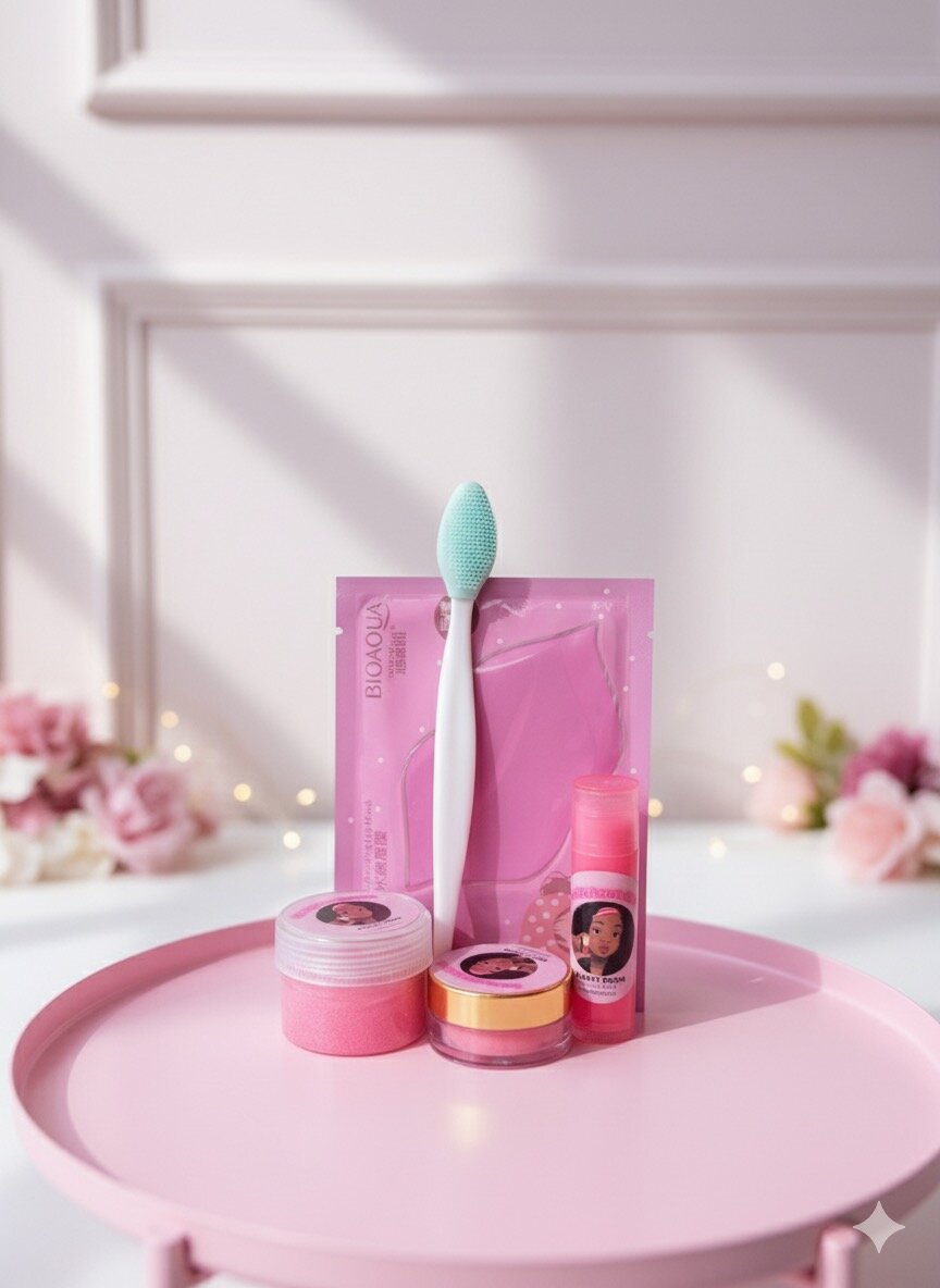 Découvrez notre ensemble soin du visage, parfait pour une routine beauté complète. Ce kit contient une crème lèvres rose un gommage des masques hydratants, un baume à lèvres nourrissant, et une brosse nettoyante pour un teint éclatant. Idéal pour la peau sèche et terne. Offrez-vous une peau radieuse et bien soignée dès aujourd'hui!