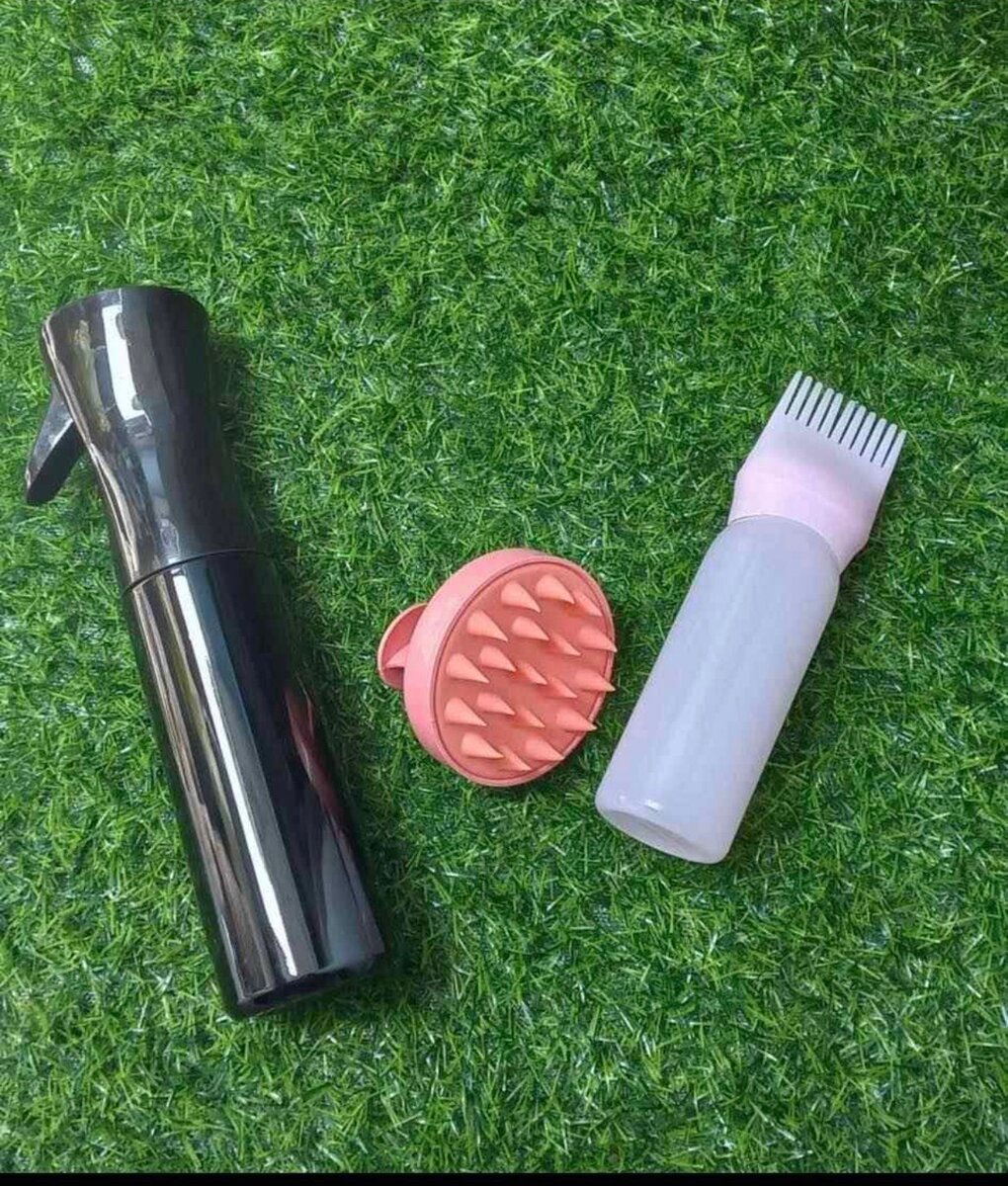 Transformez votre routine de soins capillaires avec cet ensemble 3 pièces. Comprend un vaporisateur noir pour une hydratation rapide, une brosse en silicone pour masser votre cuir chevelu, et un flacon doseur pratique pour appliquer vos produits préférés. Parfait pour un soin quotidien efficace et relaxant.
