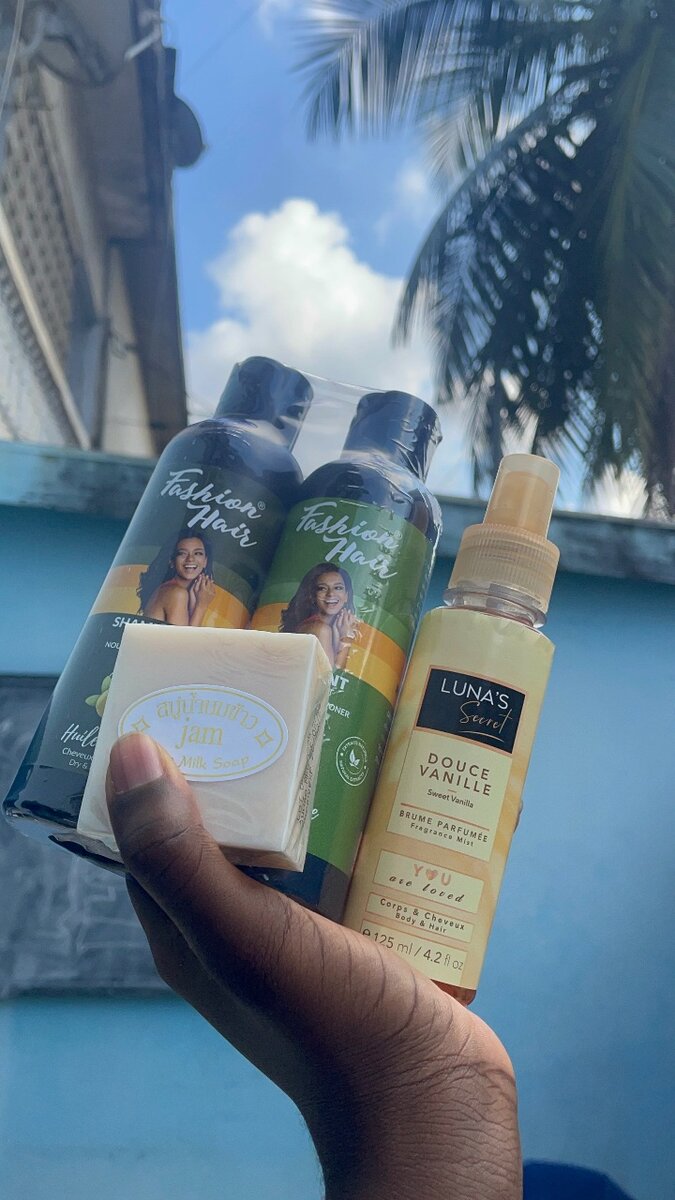 Découvrez notre ensemble de soins incluant un shampooing nourrissant, un savon doux et un spray parfumé vanille. Parfait pour une routine quotidienne qui hydrate et sublime vos cheveux et votre peau. Un choix idéal pour les amoureux de soins personnels de qualité.