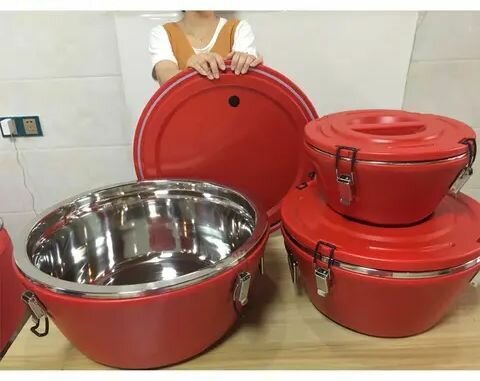 Lot de 3 grandes soupières thermos (36 L, 26 L, 15 L), avec intérieur en acier inoxydable. Conserve chaud ou froid pendant 20 heures. Service, robuste et élégant.