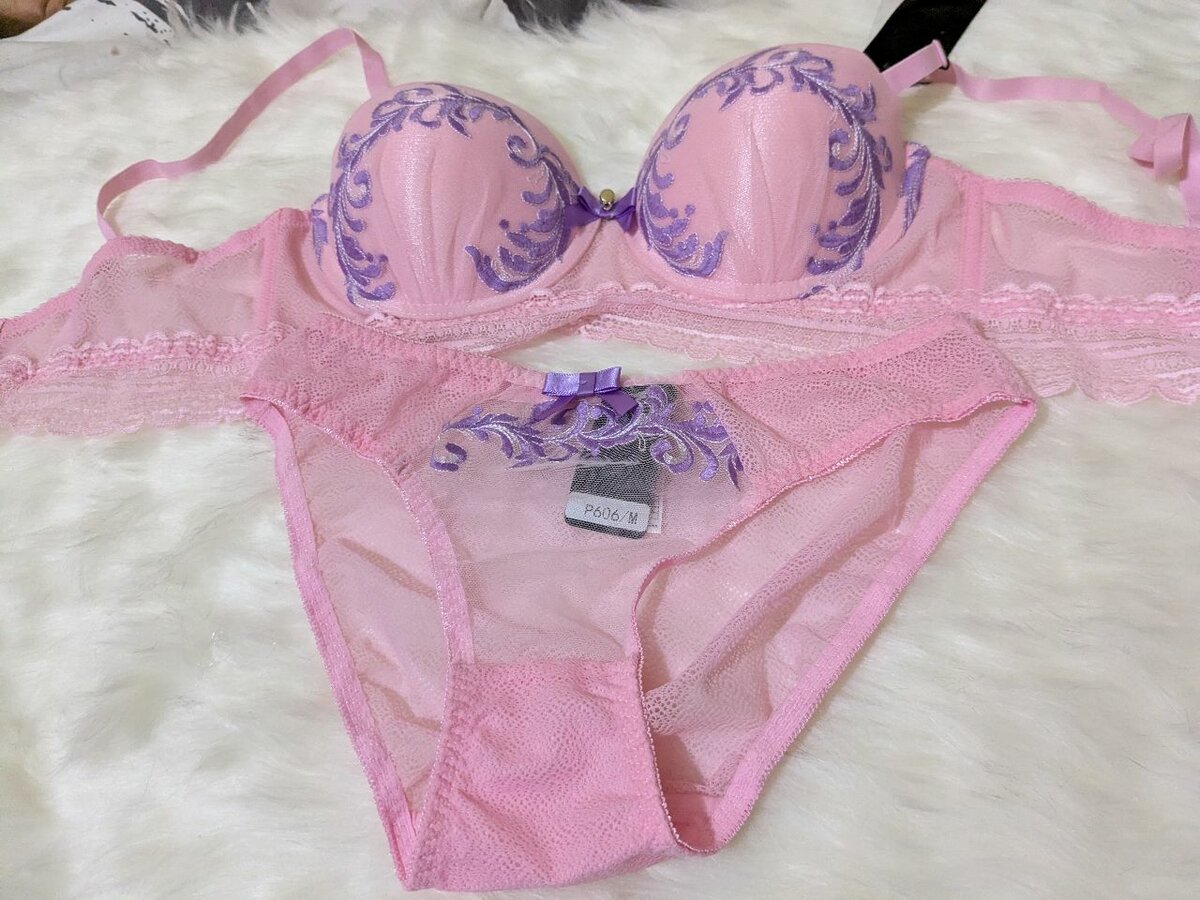 Ensemble lingerie en nylon rose, élégant qui tire légèrement, épousant délicatement les formes