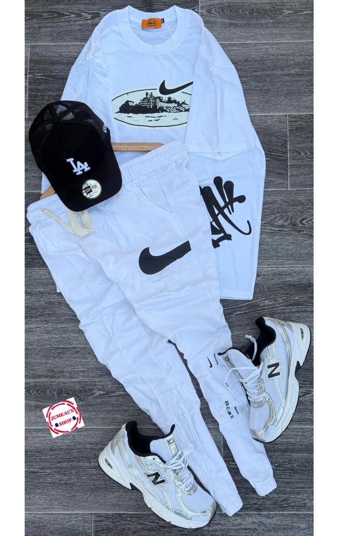 Parfait pour un look décontracté, cet ensemble sportif blanc pour homme comprend un t-shirt imprimé et un pantalon assorti. Confortable et stylé, idéal pour la salle de sport ou les sorties décontractées. Associez-le avec des sneakers pour compléter votre style urbain.