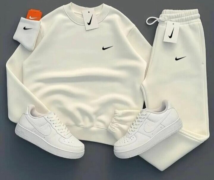 Découvrez cet ensemble sport Nike blanc, idéal pour un look décontracté et tendance. Comprenant un sweat-shirt, un pantalon et des baskets assorties, ce set offre confort et style. Parfait pour les sorties et les journées actives. Ne manquez pas cette opportunité d'allier mode et fonctionnalité.