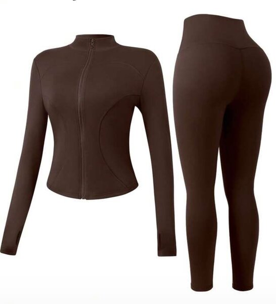 Profitez du confort et du style avec cet ensemble de sport pour femme. Composé d'une veste zippée beige avec des détails contrastés et d'un pantalon marron, cet ensemble est idéal pour l'exercice ou pour un look décontracté et tendance. Fabriqué avec des matériaux de qualité pour un ajustement parfait. Parfait pour les entraînements, le yoga ou les promenades en ville.