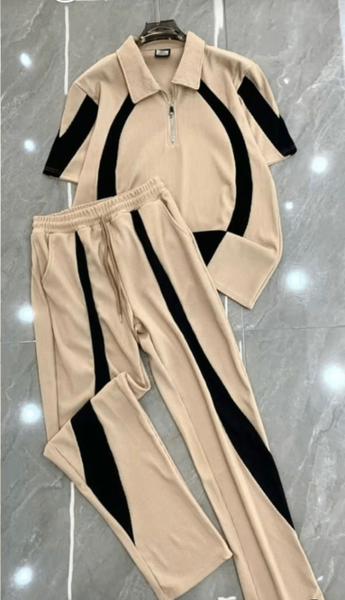 Ensemble sport homme à la mode avec couleurs contrastantes. Parfait pour un look décontracté et sportif. Tissu confortable et respirant. Idéal pour la salle de sport, les sorties ou la détente à la maison. Disponible en plusieurs couleurs.
