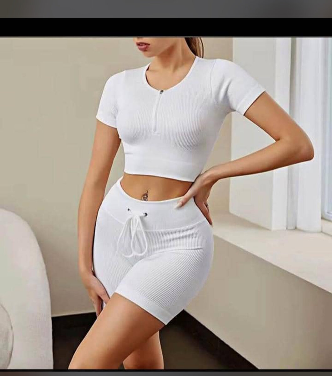 Élégant ensemble de sport pour femme, composé d'un crop top et d'un short. Parfait pour l'été ou pour vos séances d'entraînement, fabriqué dans un matériau respirant et extensible. Ce set polyvalent vous garantit confort et style. Idéal pour le sport, la maison ou les sorties décontractées. Disponible en plusieurs couleurs.