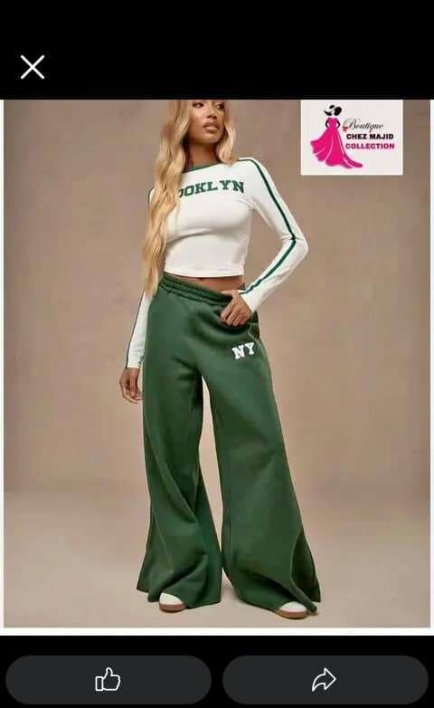 Découvrez cet ensemble sportif pour femme, composé d'un haut léger à manches longues et d'un pantalon ample vert. Parfait pour un look décontracté et tendance, il s'ajuste confortablement à la silhouette. Que ce soit pour une sortie en ville ou une journée sportive, cet ensemble vous garantit un style unique et moderne.