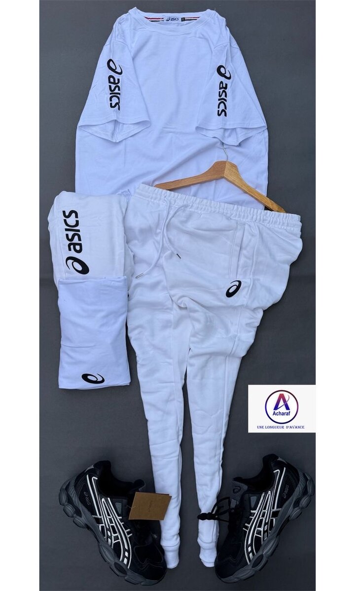 Optez pour cet ensemble sportif Asics pour un confort optimal pendant vos entraînements. Composé d'un t-shirt, d'un pantalon et de chaussettes, il est idéal pour le sport quotidien. Conçu avec des matériaux de qualité pour une meilleure performance.